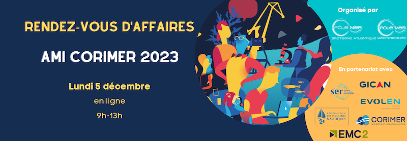 Dans le cadre de l’Appel à Manifestation d’Intérêt 2023 du CORIMER, les Pôles Mer Bretagne Atlantique et Méditerranée, en partenariat avec la Filière des Industriels de la Mer constituée par le Pôle EMC2, EVOLEN, le GICAN, le SER et la FIN, vous proposent une opportunité pour constituer vos consortiums de projets afin de répondre aux enjeux des 4 axes stratégiques de l’AMI que sont le Smart Ship, le Smart Yard, le Green Ship et les Next-Gen Offshore Industry.