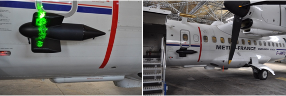 Figure 1 : sonde aéroportée réalisée et son installation sur un ATR 42