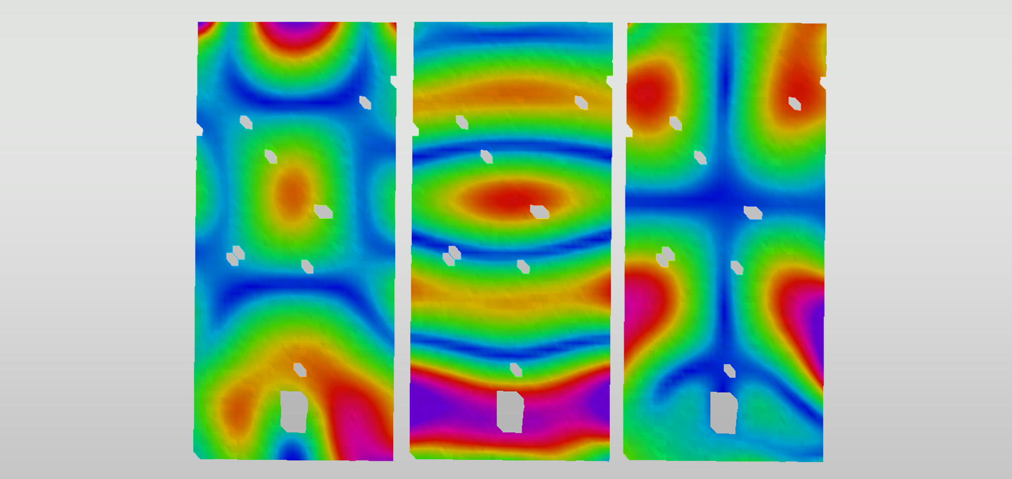 Ce logiciel permet également le calcul du champ de contrainte directement à partir du champ de déformation mesuré et d’une loi de comportement matériau isotrope ou même anisotrope. Les concentrations de contrainte apparaissant sur la pièce peuvent donc être identifiées grâce à ce logiciel.