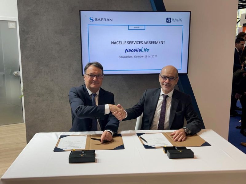 Safran Nacelles a signé avec TARMAC Aerosave, société de stockage, de maintenance, de transition et de recyclage des avions et moteurs, un contrat de cinq ans pour le support des nacelles qui équipent les avions en maintenance sur les sites français (Toulouse et Tarbes) et espagnol (Teruel) de la société. TARMAC Aerosave aura accès aux pièces de rechange ainsi qu’aux grands composants de nacelles (entrées d’air, capots de soufflante, inverseurs de poussée et systèmes d’échappement). La société bénéficiera de prestations d’ingénierie de solutions de réparation ainsi que des services de maintenance, réparation et révision (MRO3) sur le site de Safran Nacelles à Pont Audemer en France ou directement sous aile sur les différents sites de TARMAC Aerosave.